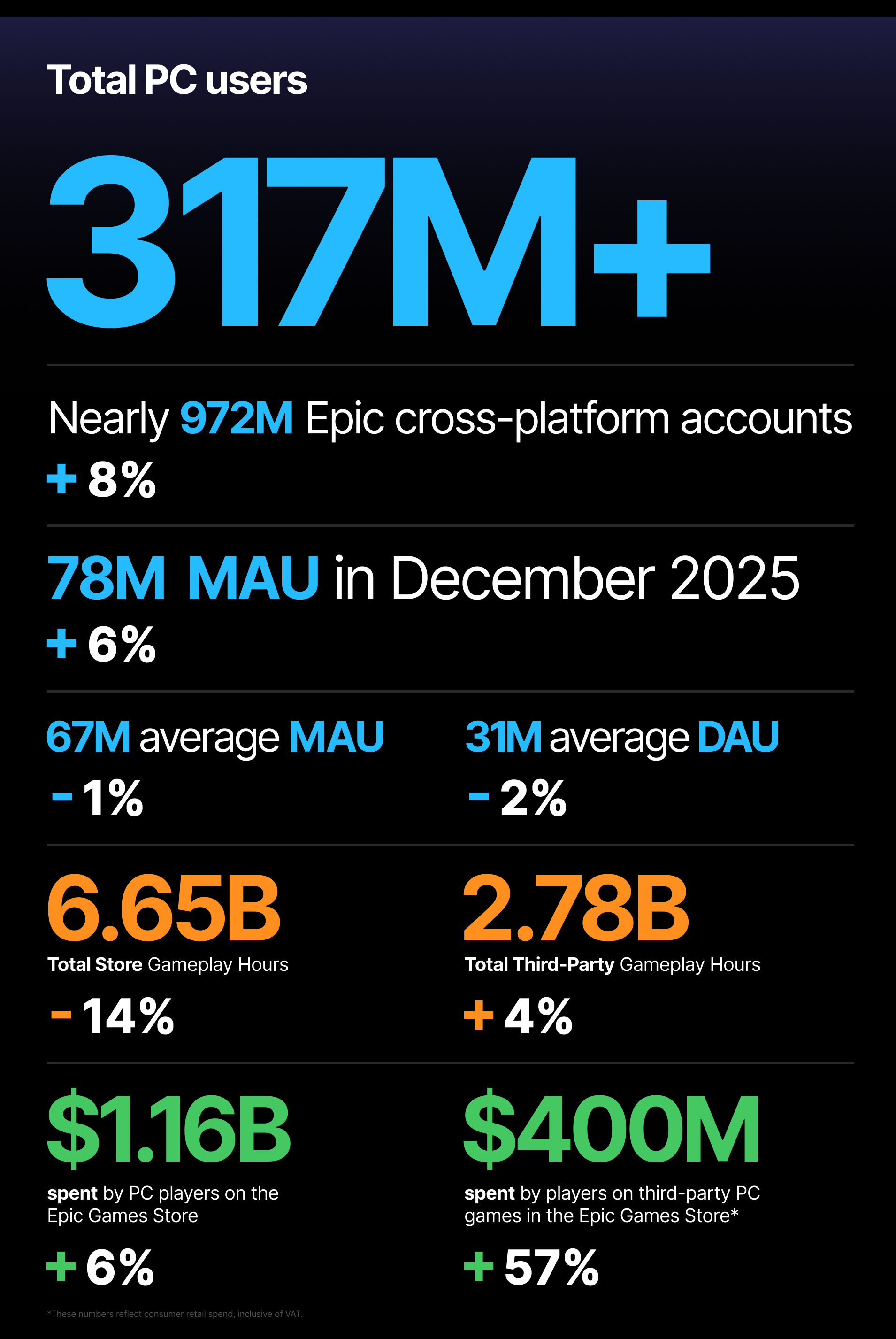 In 2025, the Epic Store experienced an unprecedented player count and a significant 57% surge in third-party game sales, surpassing $400 million