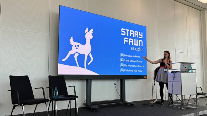 Stray Fawn promotes equality within the team by ensuring equal pay for all employees. Any staff member working at the studio for three years earns bonuses equivalent to those of the founders, adjusted only for full-time or part-time status. Schwab commented, "Everyone's earnings are transparent, which boosts motivation as everyone sees their efforts reflected in their compensation."