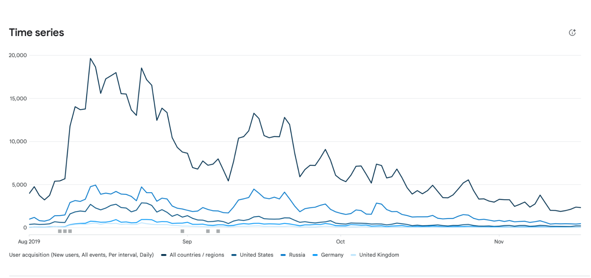 Three to four months passed. I received a notification from Google Play about updating some libraries in the game. I logged into the developer console, and just for fun, decided to check the game's reviews. I read one, two, ten, a hundred... hold on. I checked the downloads. The game was featured. Downloads were soaring at a rate of 300,000 a month. A ton of organics.