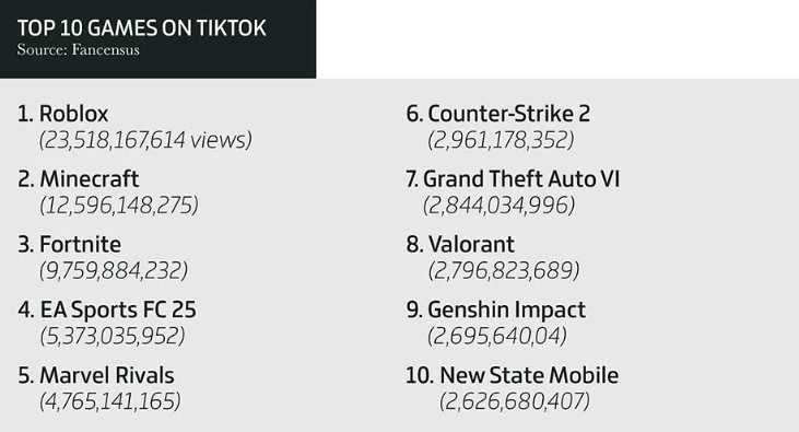 - В TikTok наибольшей популярностью пользовались ролики по Roblox, Minecraft и Fortnite. В общей сложности у них 45,87 млрд просмотров.