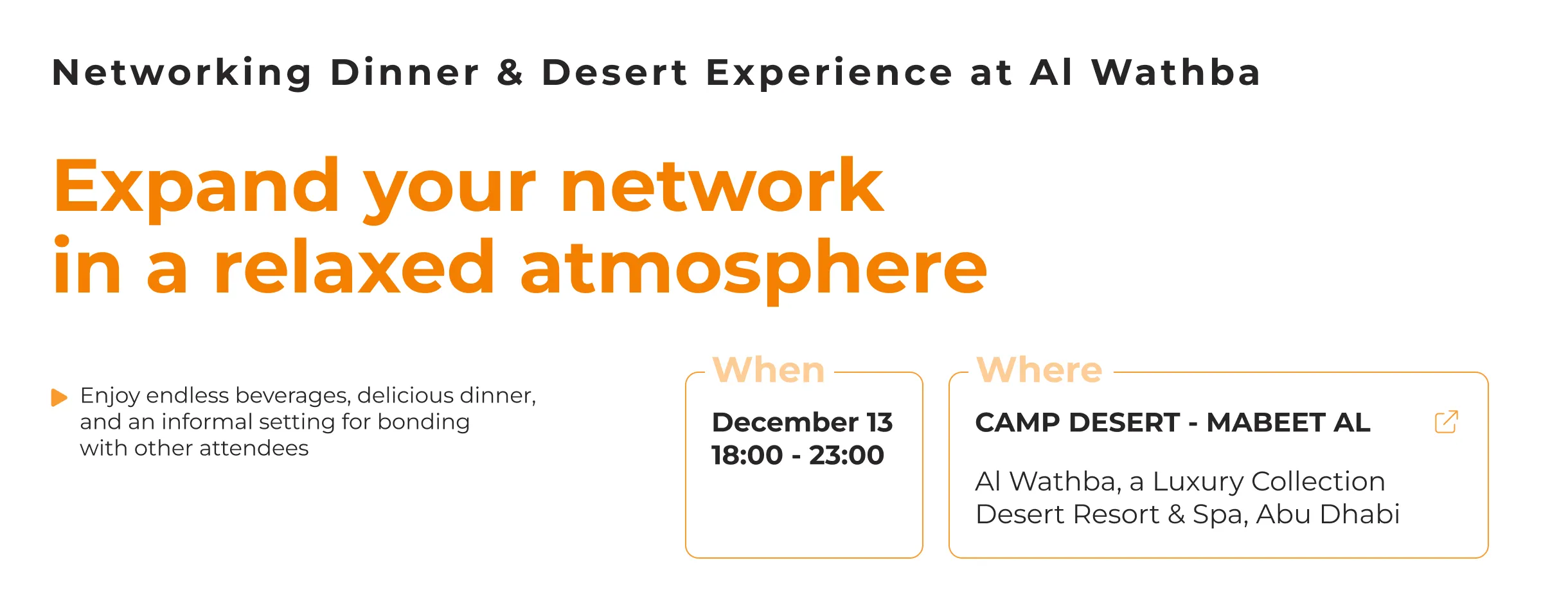 Starting with dinner, the evening will transition into a more intimate and reflective setting as we get out to the desert. Around cozy campfires, surrounded by the tranquility of the dunes, we’ll have time for relaxed conversations, star gazing, and connecting with fellow industry leaders in a unique and inspiring environment.